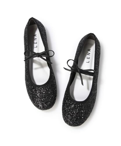 ブラックグリッターのラウンドトゥリボンストラップフラットシューズは、上品さと快適さを両立。かわいらしいデザインで、フェミニンなスタイルにぴったり。Mサイズで幅広い足にフィットし、日常からお出かけまで幅広く活躍します。