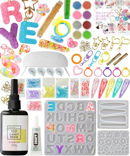 かわいいフラワーデザインやアルファベットのモールドなども付いているレジンのスターターセットはいかがですか。