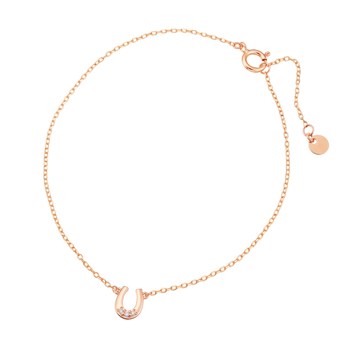 こちらのツツミのブレスレットはいかがでしょうか。肌馴染みの良いピンクゴールドのチェーンブレスレットに、幸運のモチーフ馬蹄のチャームがワンポイントになって素敵だと思います。シンプルで日常使いしやすいのも良いですね。