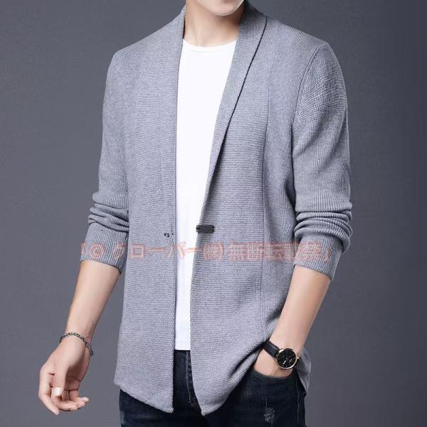 こちらのメンズカーディガンはいかがでしょうか。長袖でニット素材ですので春先にあると便利です。無地でシンプルなデザインでおしゃれです。
