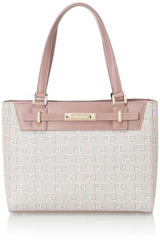 ピンキー&ダイアンのトートバッグでピラミッドモデルはいかがでしょうか?サイズはマチ12x横30x縦23cmです。底鋲付きで床置きでき便利!上品な白っぽい色にロゴ文字のPDのマークが型押しされており上部とハンドルと底が淡いピンクで上品なカラーです。A4が入るサイズで通勤にも使えますし、休日のおでかけにもきれいめコーデに似合いそう!ポケットは背面ファスナー・内側は切りファスナー・オープンポケット付き。