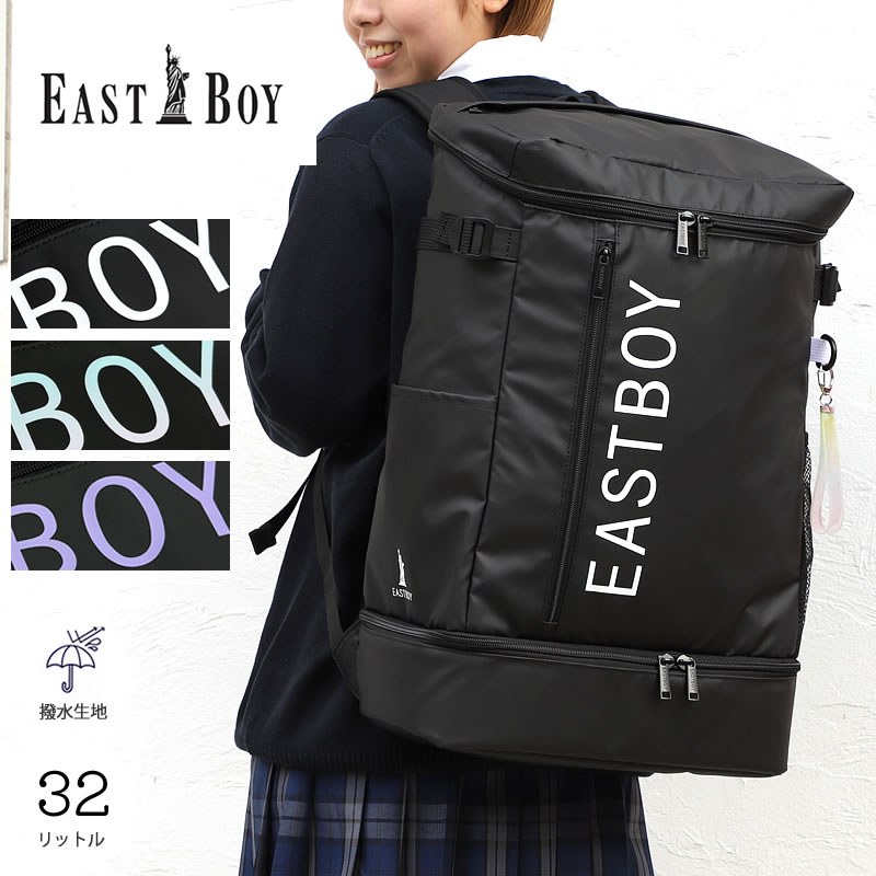 こちらのイーストボーイのカジュアルなスクエア型のリュックはいかがでしょう。大容量が入るサイズで、ロゴのデザインが可愛くておすすめです。