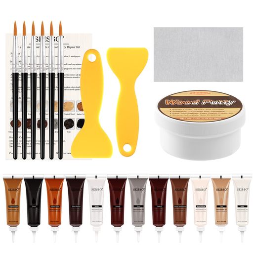 SEISSO 木製品キズ補修セットは、キズや切れ目、ビビ、穴などを補修することが出来ます。色味も沢山あって目立たない色を選ぶことが出来るのも便利ですね!