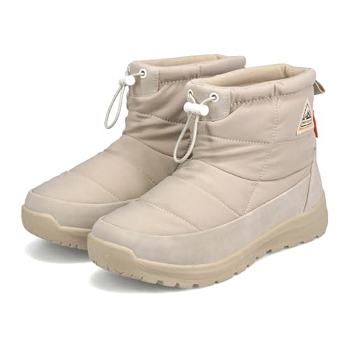 クリフメイヤーのショートスノーブーツがお薦めです。表地は防水性があり地面から4cmまでの防水設計仕様で雨や雪をはじきます。中綿入りのダウンで内側には裏起毛付きで保温性抜群!はいた瞬間からあったか!はき口にはドローコード付きで上からの冷気もシャットアウトし防寒対策になります。アウトソールの裏面はかわいい雪の結晶模様で溝が彫られており防滑性があり雪道も歩きやすいです。アイボリーで何色にも似合います。