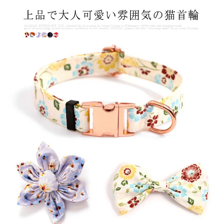 こちらの猫ちゃん用の首輪はいかがでしょうか。リボンやフラワーモチーフなど3種類の中から選べるます。とても華やかでかわいいと思います。