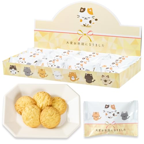 こちらの退職の感謝を伝えるありがとうギフトのクッキーはいかがでしょう。何よりも、パッケージのねこちゃんがかわいいです。24枚入りなので、2つか3つ購入したら足りると思います。箱のイラストの猫ちゃんもお礼の姿勢で、おすすめです。