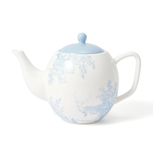 フランフランのティーポットはいかがでしょう?白地に植物と動物の絵柄が描かれ、蓋の色と合わせてあるところがおしゃれでかわいいですね。絵柄もナチュラルであたたかみもあり、シンプルなので部屋の雰囲気を邪魔しないところが素敵です。茶こしつきで簡単にお茶が楽しめますし、レンジ対応ですぐにあたためられます。食洗器対応でケアも楽ですね。