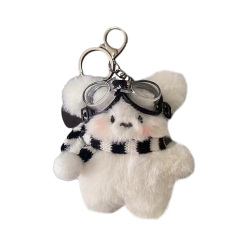 白い犬のパイロットのぬいぐるみのデザインで可愛いです Dカンや、キーリングの両方がついていて、鞄や鍵などにつけやすいです