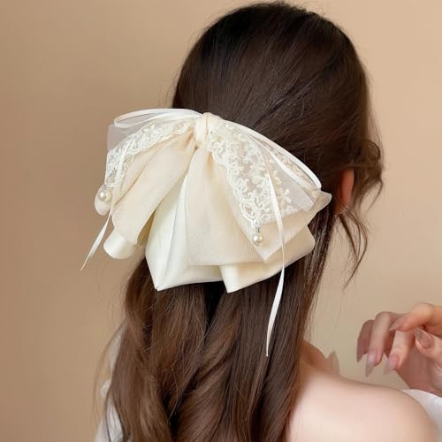こちらリボンのヘアクリップはいかがでしょうか。ふんわりとしたボリューム感のあるレースリボンのクリップで、上品で可愛いと思います。
