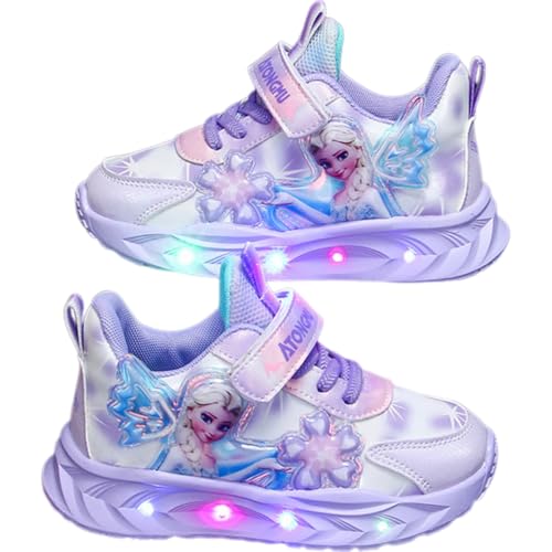 パープルカラーの光るスニーカーで可愛いです レザー製のスニーカーで高級感があります 足首をマジックテープでとめることができて、ぴったりのサイズにできて履きやすいです