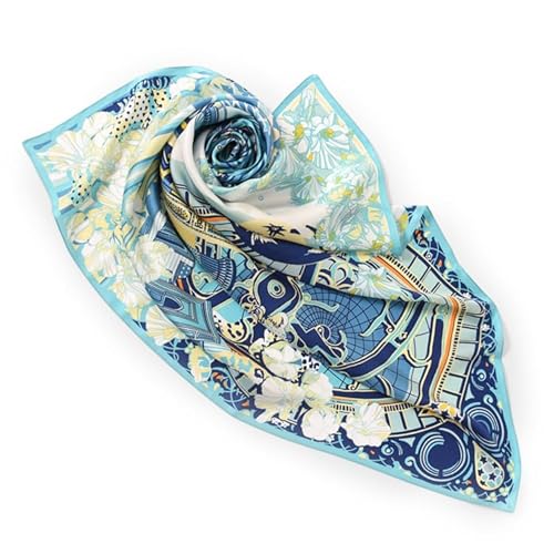 ブルーの花柄のスカーフでとてもおしゃれです88cm ×88cm のサイズで使いやすい大きさですシルク100%の生地で滑らかで肌触りがいいです