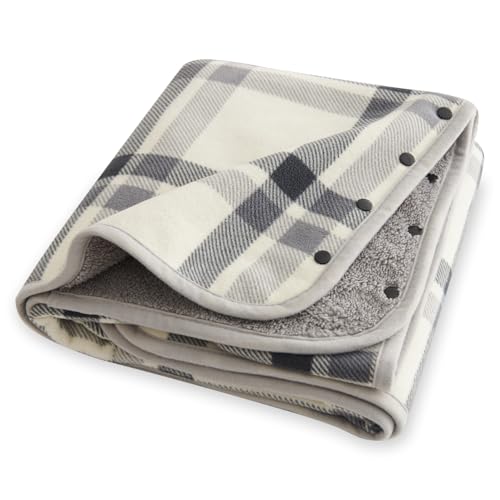 ベージュのチェックのデザインで、おしゃれです。スナップボタンが付いていて便利です。約80cm ×100cmのサイズで使いやすい大きさです。洗えるので衛生的です。
