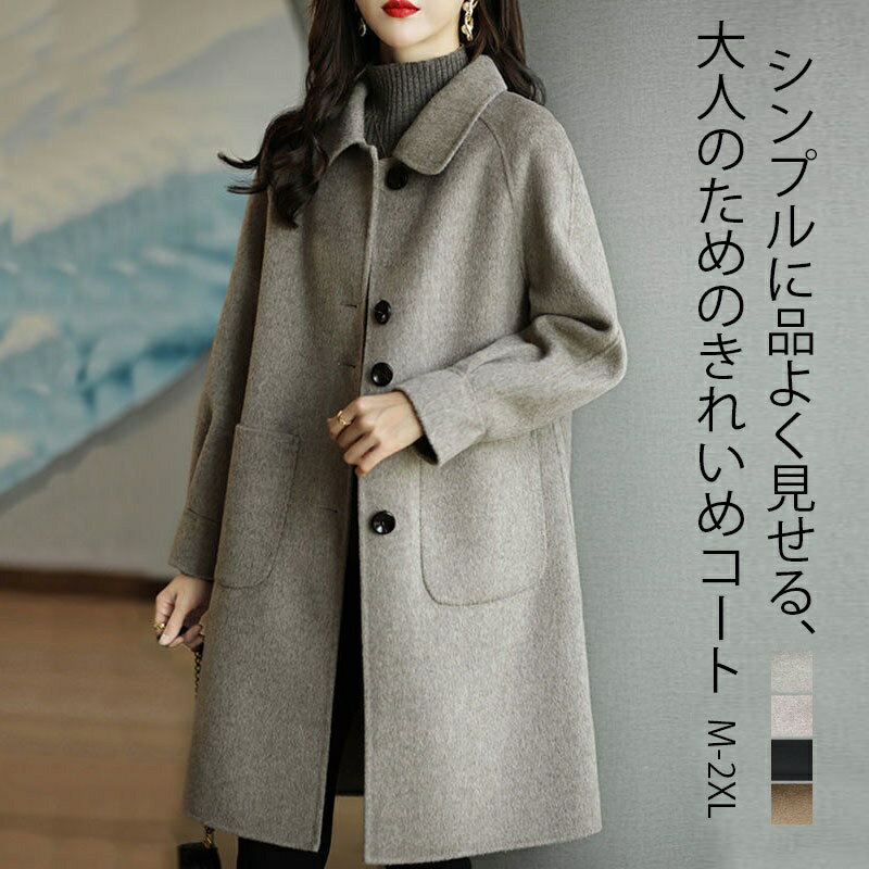 50代の女性におすすめしたいこちらのノーカラーコートは、首元がすっきりとしたデザインで、マフラーやアクセサリーとの組み合わせにより上品で落ち着いた雰囲気を演出できます。ゆったりとした着心地ながら、シルエットがきれいなので、旅行中のアクティブな動きにも対応しつつ、フォーマルな食事の場にもそのまま着ていける汎用性の高さが特徴です。春先まで長く愛用できる、大人のお出かけスタイルに最適な一枚です。